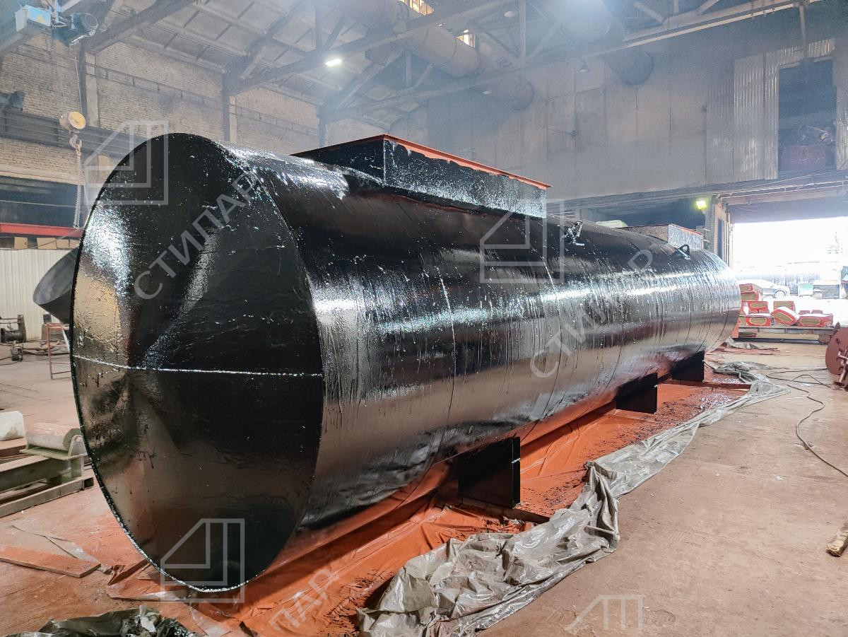 По окончании этапа сварки и сборки резервуара была проведена обязательная проверка на герметичность, чтобы убедиться в отсутствии возможных протечек. Затем, на подготовленную поверхность резервуара было нанесено несколько слоев грунта, с последующим нанесением слоя резинобитумной мастики. Такой способ защиты от внешнего воздействия обеспечит резервуару антикоррозийную стойкость на долгие годы.